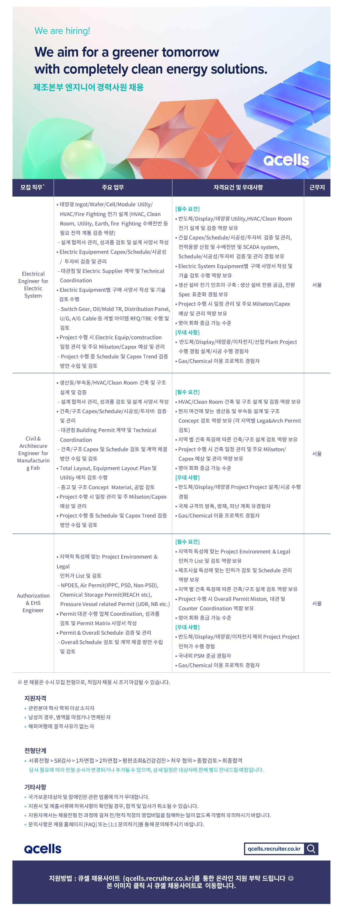 [한화솔류션 큐셀] Plant Engineer 경력사원 채용