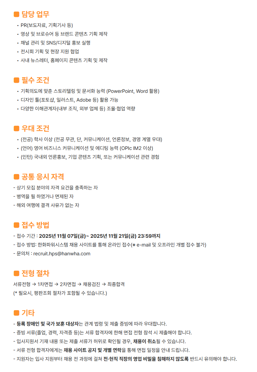 [한화파워시스템] 커뮤니케이션팀 채용(계약직)