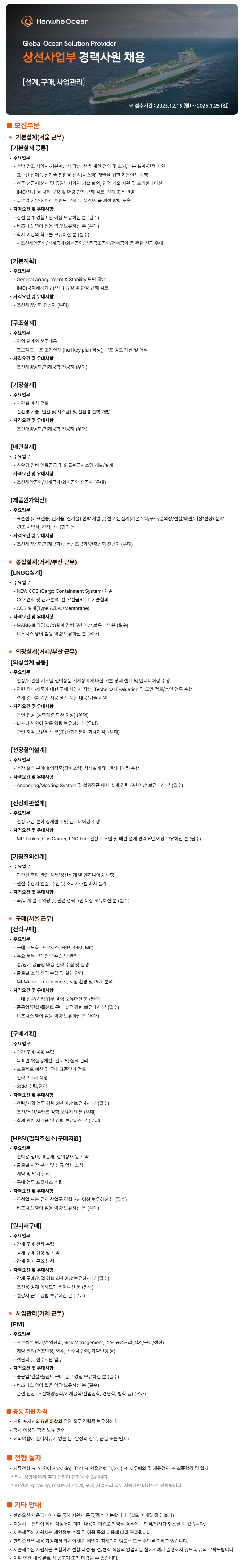 [상선사업부] 경력사원 채용(설계, 구매, 사업관리)