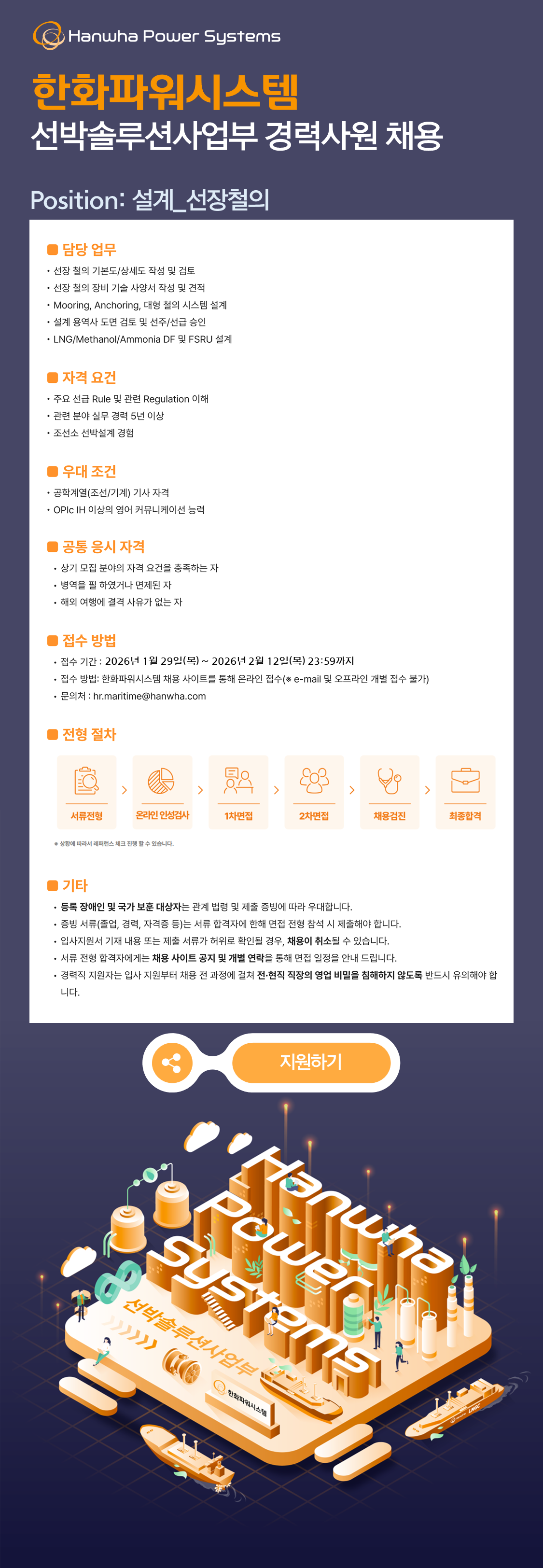 선박솔루션사업부(부산) 설계(선장철의) 경력사원 채용