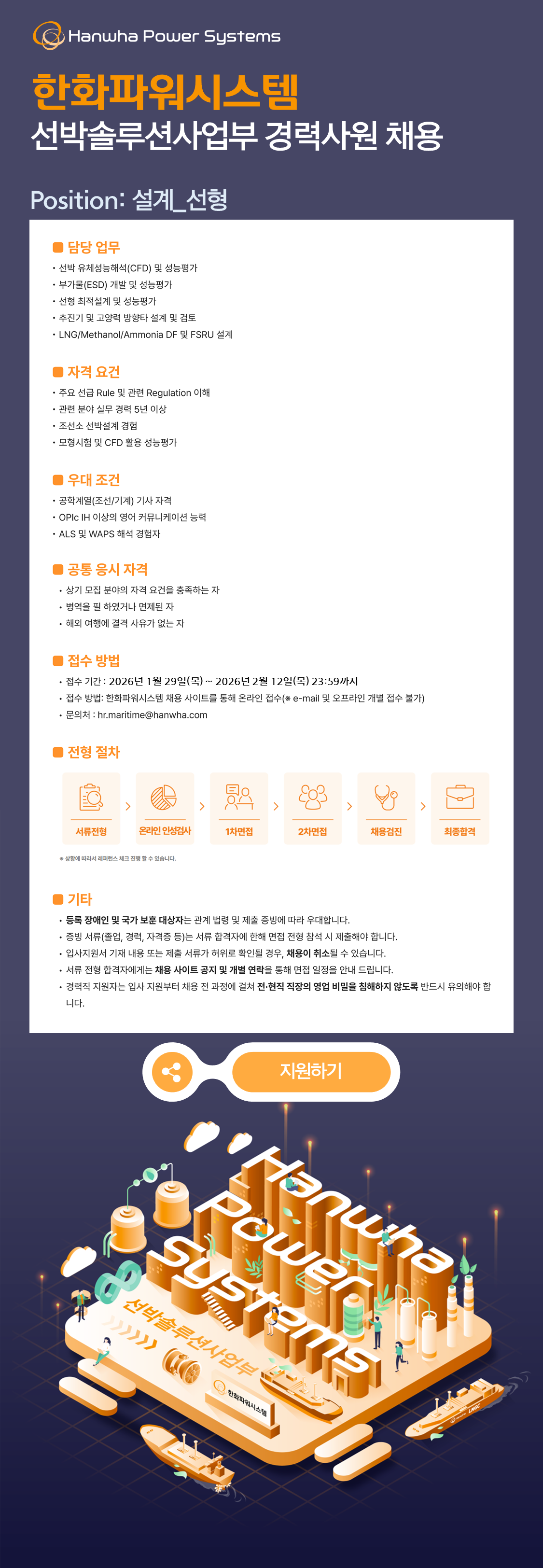 선박솔루션사업부(부산) 설계(선형) 경력사원 채용