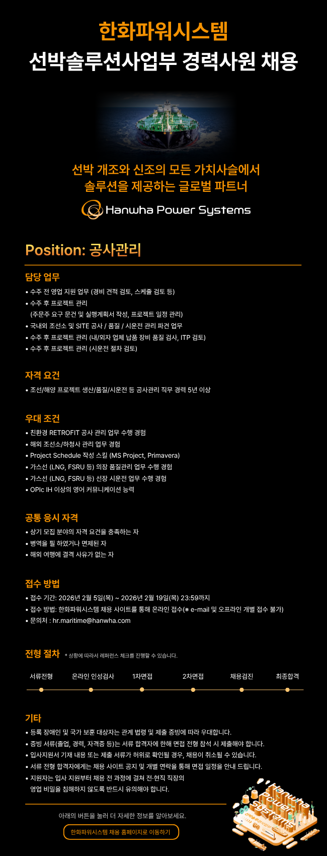 선박솔루션사업부(부산) 공사관리 경력사원 채용