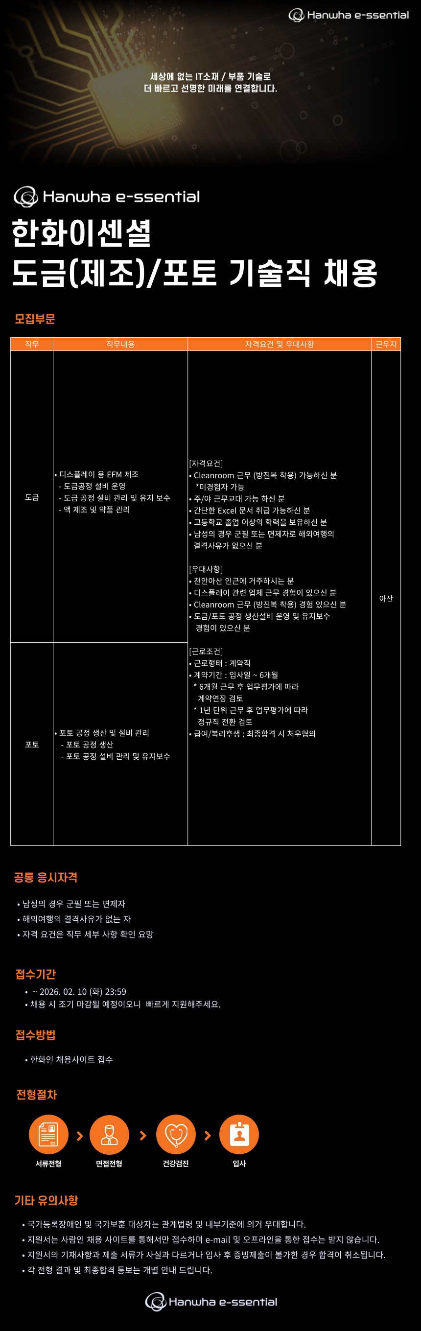 [한화이센셜] 도금(제조)/포토 기술직 채용