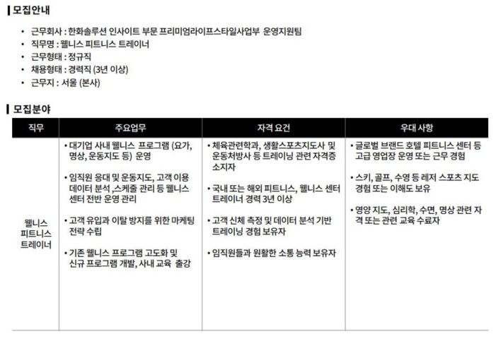 한화솔루션 인사이트 PLS사업부 웰니스 피트니스 트레이너